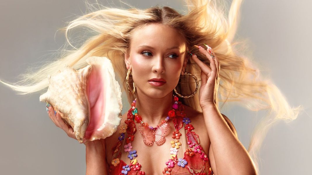 Overwrought images from a “Euro Summer” usually involve fat bouquets of Italian tomatoes, blue-domed Greek buildings, and country-agnostic bustier dresses in gingham and fruit prints. In Zara Larsson’s world, it’s where ’90s Malibu Barbie hits up Sweden for summer; where the sun never sets and everything is in Lisa Frank-esque, acidic HD. Midnight Sun, Larsson’s fifth studio album, is the soundtrack.