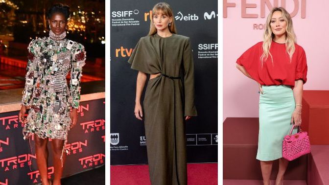 In Spain, Lawrence slipped into a sharp Phoebe Philo dress that had asymmetric sleeves and cut-outs at the waist. It was a severe, yet ultra-cool, look that reinvented the set ideals of a movie premiere gown. In France, Jodie-Turner Smith also delivered a winning screening look for the Tron: Ares photo call—and she did perfect method dressing in the process, slipping into a futuristic, motherboard-inspired dress from Schiaparelli with built-in wires, calculators, and phones. The drama! Just as good? Her co-star Greta Lee in her electric-violet Luar suit. Such is how superstars should treat fashion—give us a moment!