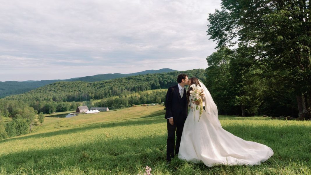 Over the Fourth of July weekend, they held a summer wedding in Estelle’s backyard. “We wanted to feel comfortable. At home. And share one of our favorite places in the world with people who might never actually get to Vermont,” says Estelle, adding that the aesthetic of their nuptials was “90% Vermont, 10% Italian.” A local wedding planner, Randi Nonni, assisted with the affair.